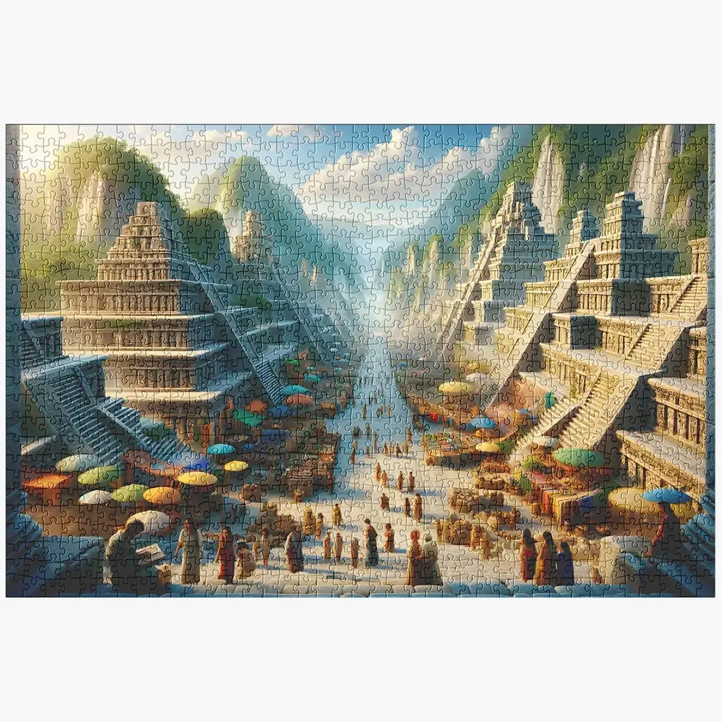 Embark on a Historical Odyssey – Journey back to the bustling markets of Ancient Greece with our intricately designed 1000-piece jigsaw puzzle. Immerse yourself in the vibrant life of a Greek city market, a center of culture, commerce, and ancient wisdom. This puzzle is a must-have for anyone passionate about history, culture, and the art of puzzle-solving.