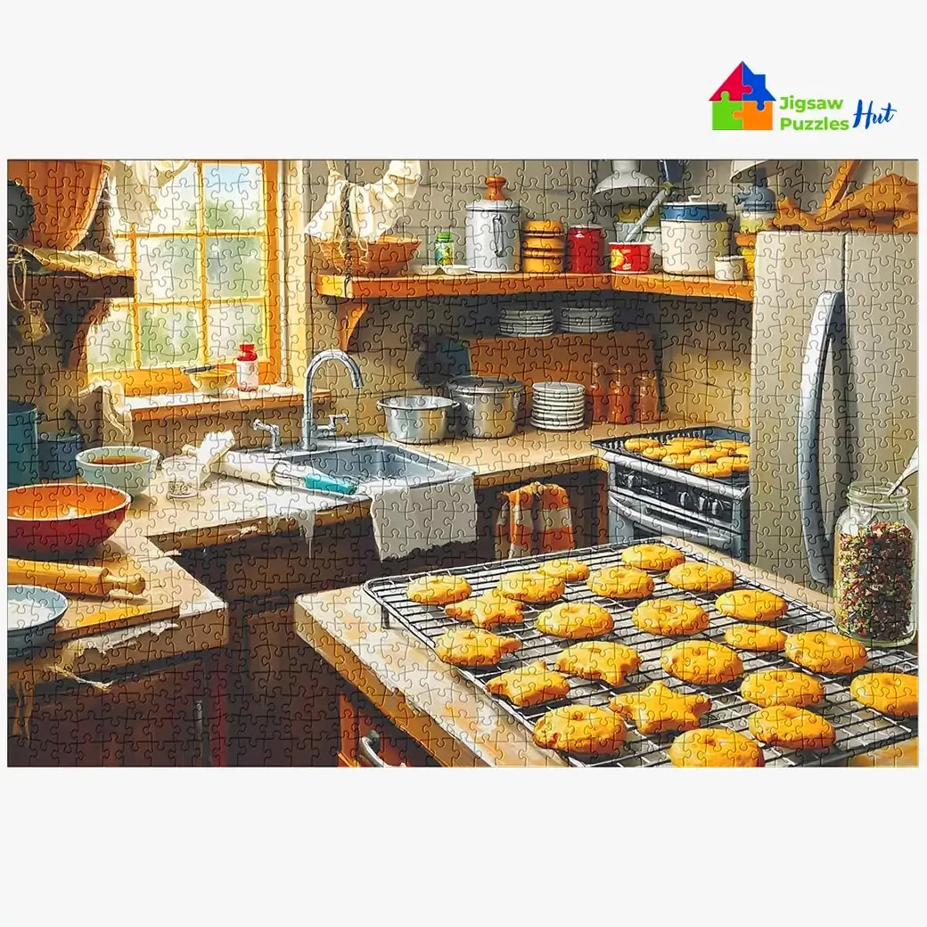 Indulge in the warm and cozy joy of home baking with the Baking Cookies Jigsaw Puzzle. This 1000 piece puzzle beautifully captures a delightful kitchen scene where trays of freshly baked cookies sit alongside cookie dough ready for the oven. Perfect for puzzle lovers, this daily life puzzle brings the comfort and sweetness of baking into your hands, offering a fun and relaxing challenge.