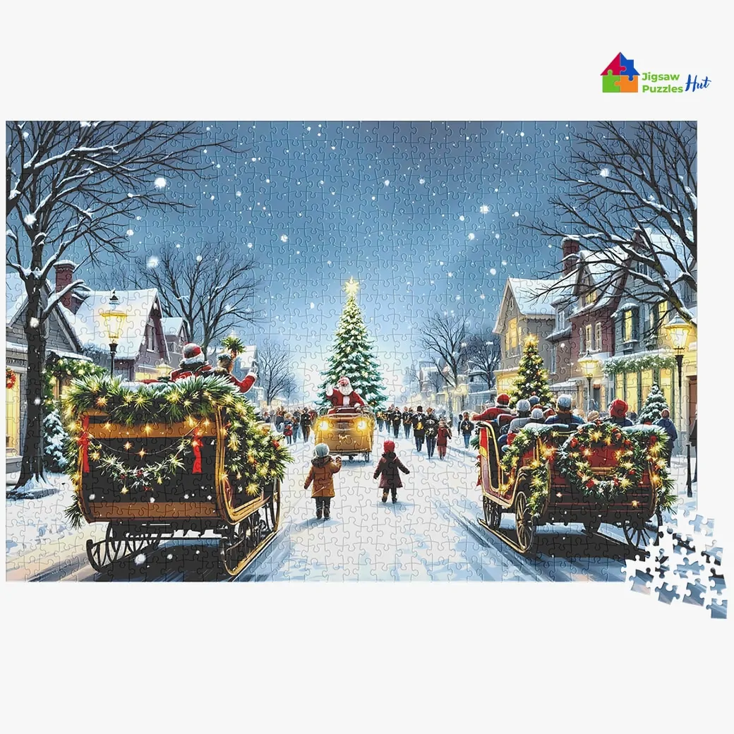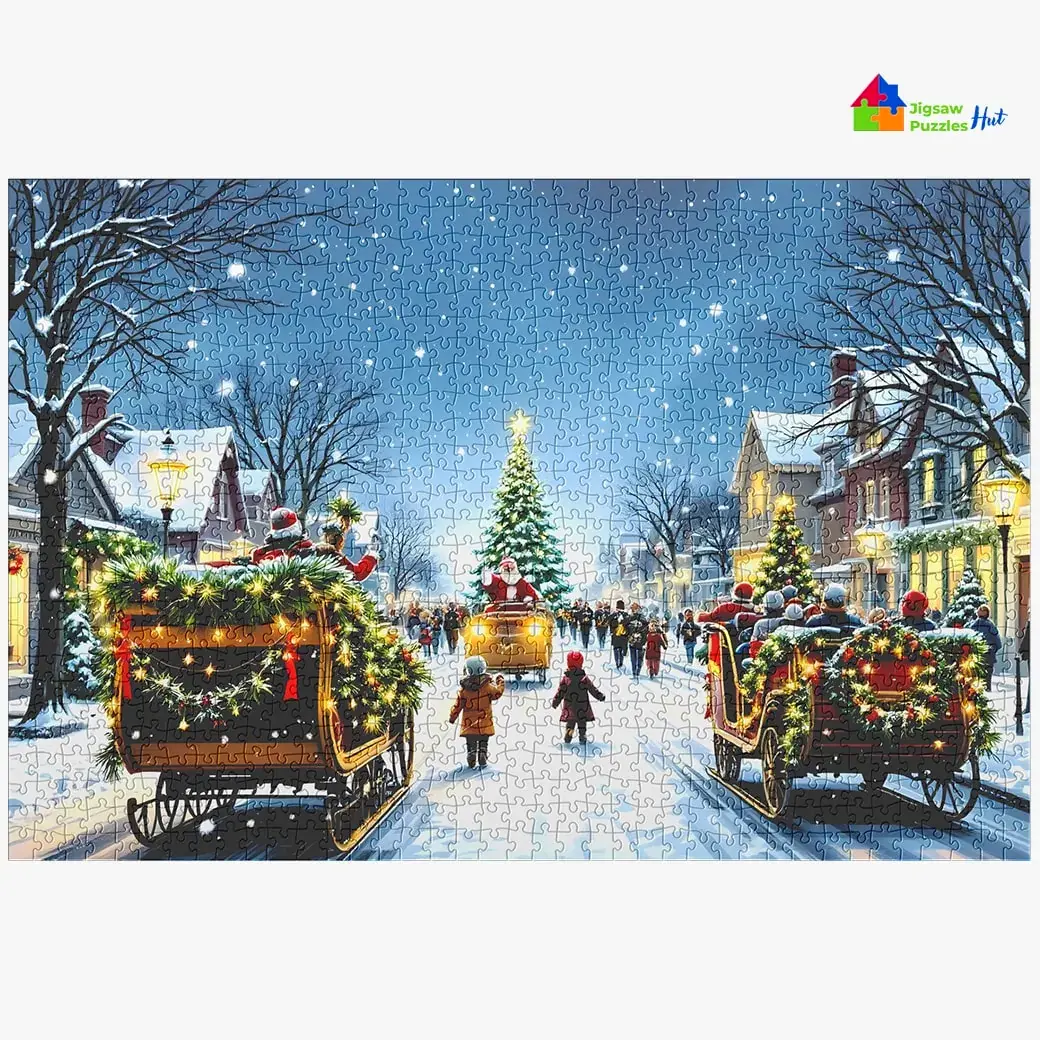 Experience the magic and excitement of a festive parade with the Christmas Eve Parade Jigsaw Puzzle! This 1000-piece jigsaw puzzle for adults showcases a dazzling Christmas Eve celebration, complete with vibrant floats, twinkling lights, and joyful spectators. Perfect for adding holiday cheer to your puzzle collection, this beautifully crafted puzzle is a fun challenge that brings family and friends together for a cozy evening activity during the holiday season.
