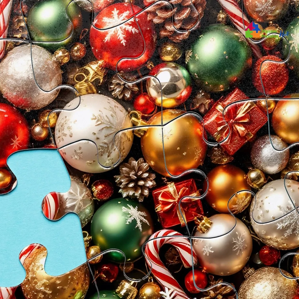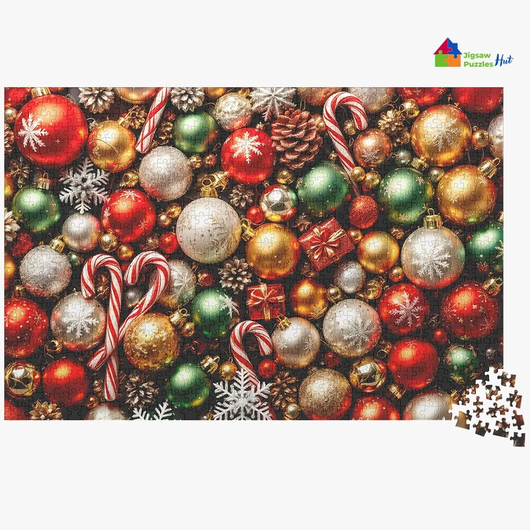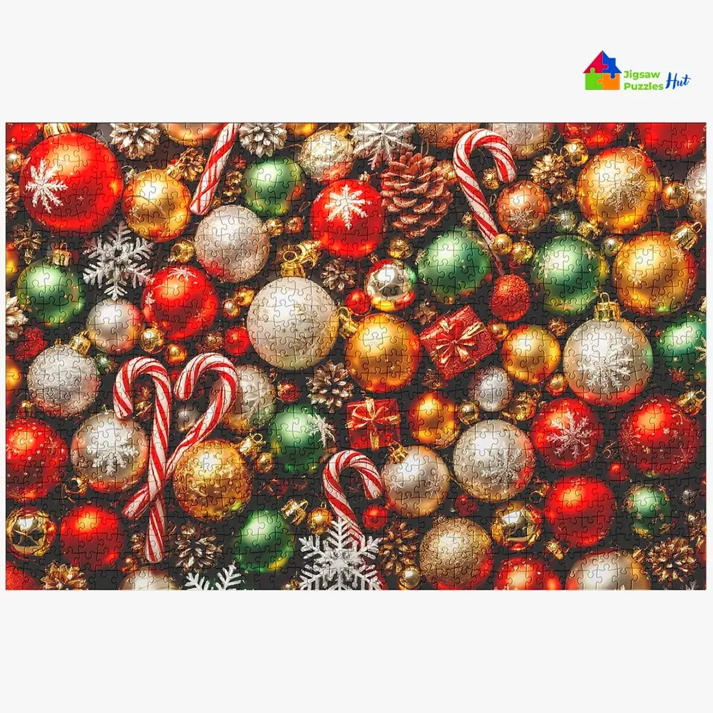 Celebrate the joy of the holiday season with our Christmas Ornaments Collage Jigsaw Puzzle. This 1000-piece puzzle is a perfect way to unwind and immerse yourself in festive cheer, featuring a vibrant, detailed collage of classic Christmas ornaments. From glittering baubles and frosty snowflakes to candy canes and tiny bells, each piece is filled with intricate details that evoke the magic of the holiday.