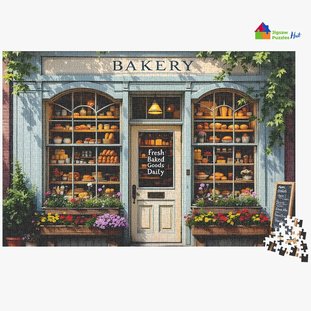 Step into the warm, inviting world of a classic bakery with the Classic Old Bakery Jigsaw Puzzle. This 1000 piece puzzle for adults showcases a beautifully detailed front view of an old bakery, capturing the charm and nostalgia of daily life. Perfect for puzzle lovers who appreciate scenes filled with history and coziness.