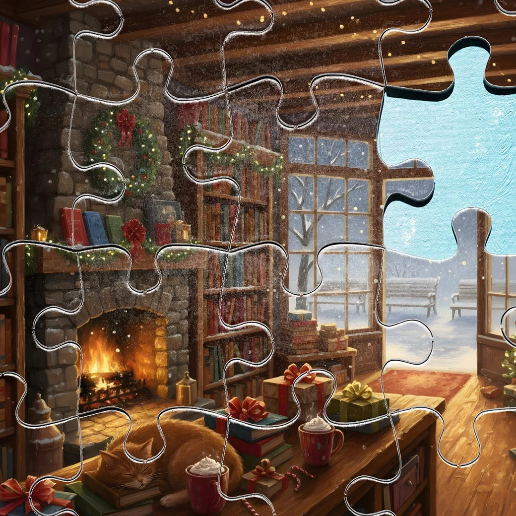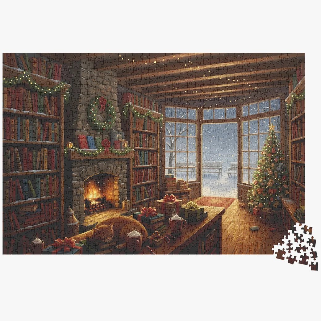 Escape the holiday rush and enjoy a peaceful winter evening with Cozy Book Shop—a beautifully illustrated jigsaw puzzle for adults that brings warmth, comfort, and the spirit of Christmas to life one piece at a time.