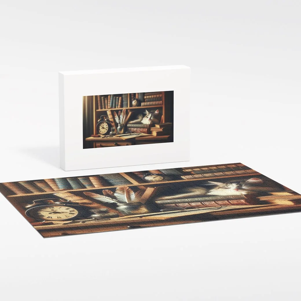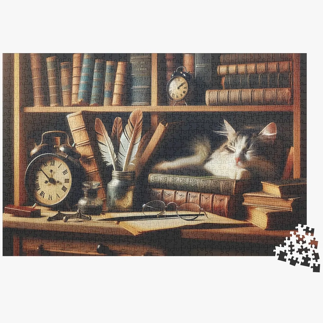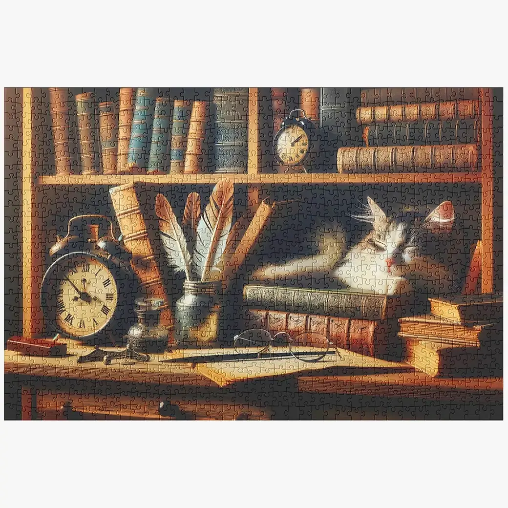 Immerse yourself in the tranquil and cozy world of a Cute Cat Sleeping On Bookshelf with our intricately designed 1000-piece jigsaw puzzle. This beautifully crafted puzzle is not just a pastime but a piece of art that brings warmth and charm to any room. Perfect for cat lovers, puzzle enthusiasts, or anyone looking to enjoy a peaceful puzzle-solving experience.