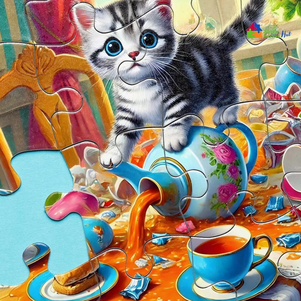 This cat jigsaw puzzle makes the ideal gift for cat lovers or any puzzle enthusiast who enjoys cute and whimsical scenes. Whether as a thoughtful present or a fun personal project, the Cute Kitten Making Mess Jigsaw Puzzle guarantees hours of amusement and relaxation.