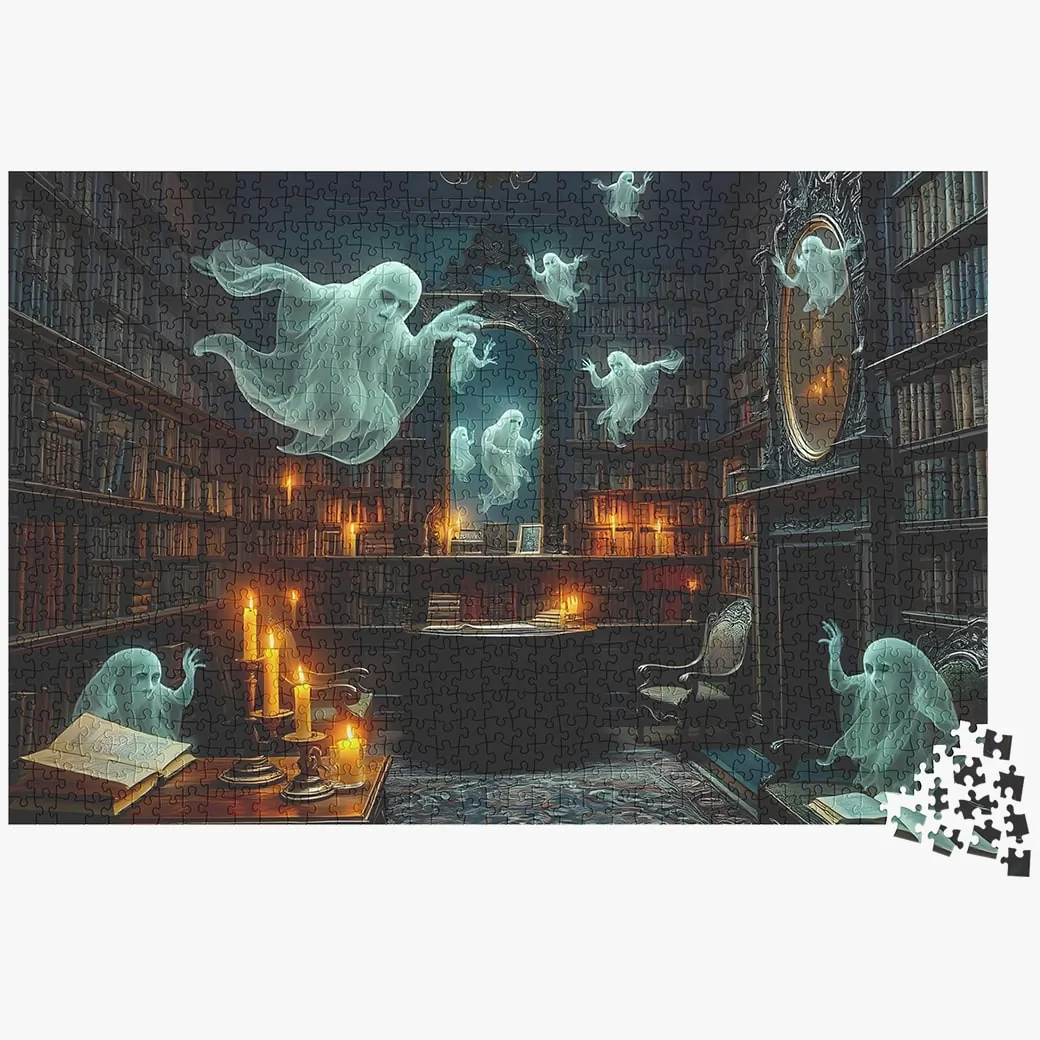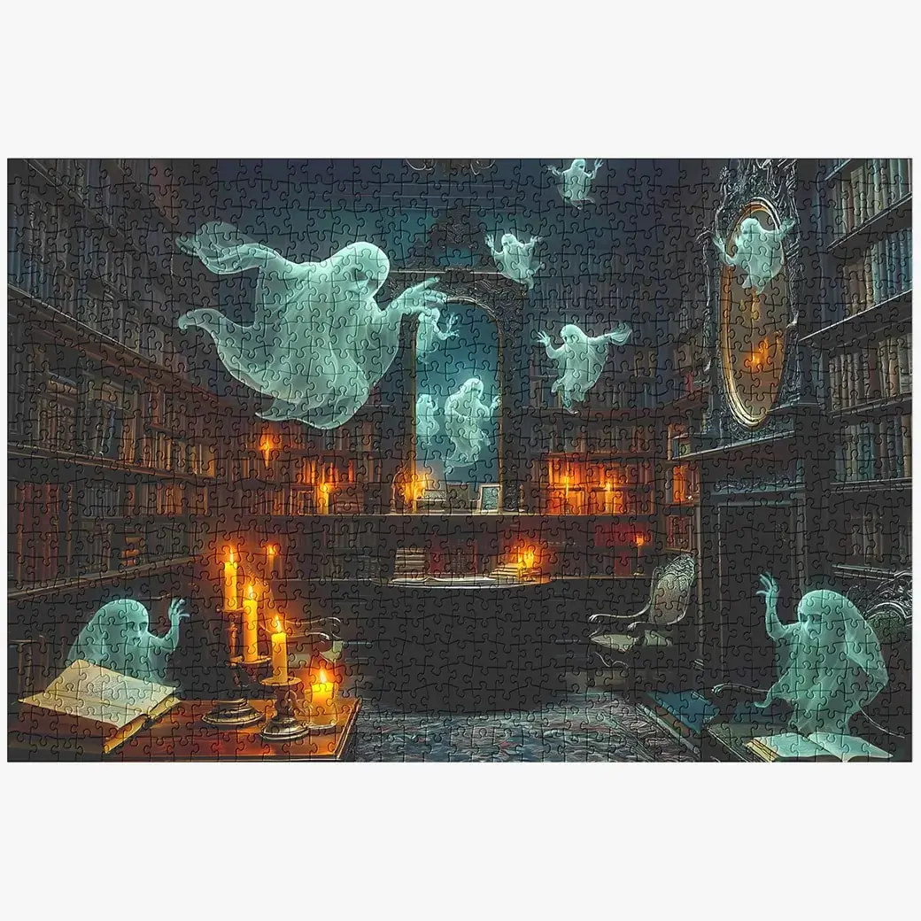 Step into the eerie world of the Haunted Library Halloween Puzzle, a 1000-piece jigsaw puzzle that promises to enchant and challenge. This haunted puzzle, with its intricate details and spooky theme, is the perfect addition to your Halloween activities. Measuring 20×30 inches and featuring a glossy finish, this jigsaw puzzle for adults is a must-have for anyone who loves the thrill of a Halloween night.