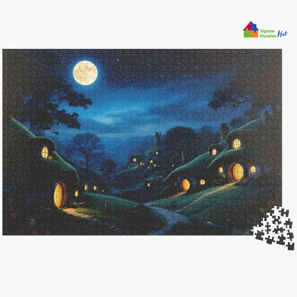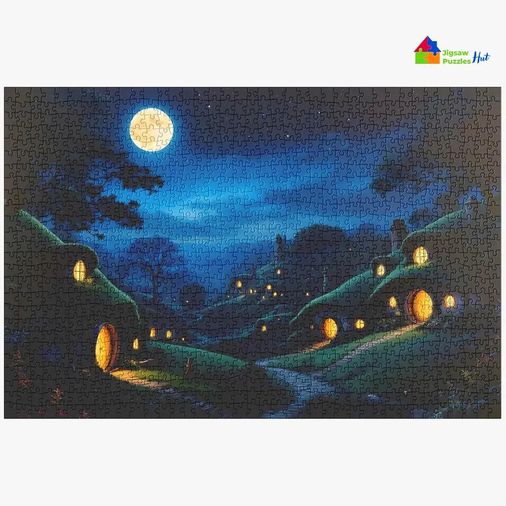 Hobbit Village At Night Jigsaw Puzzle – 1000 Piece Jigsaw Puzzle For Adults