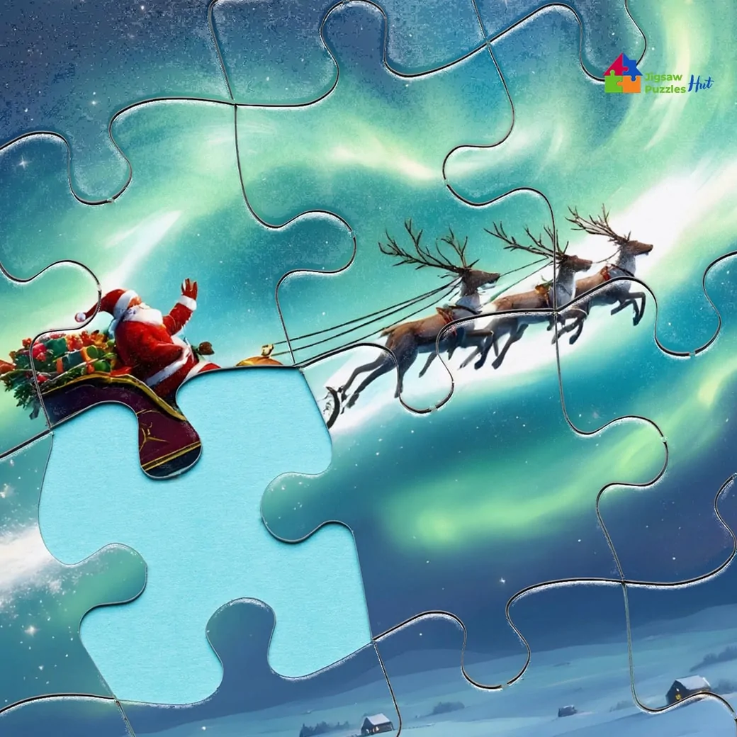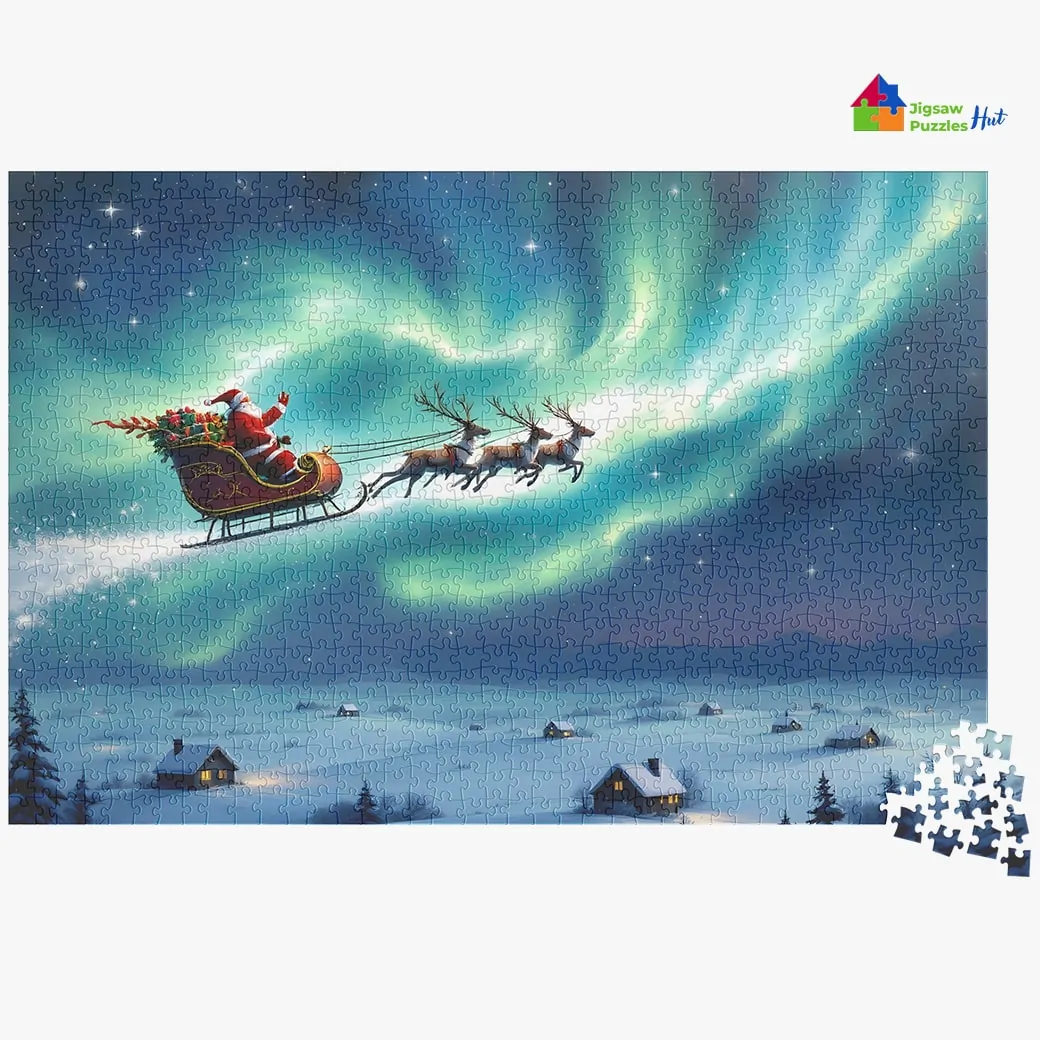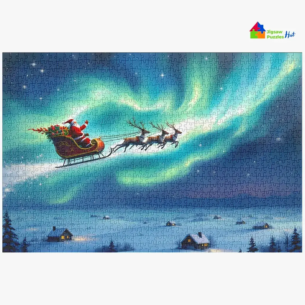 Jigsaw Puzzle Santa Flying Through Aurora Lights – 1000 Piece Christmas Jigsaw Puzzle For Adults