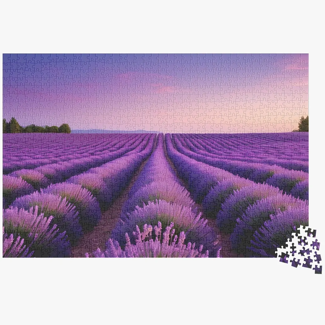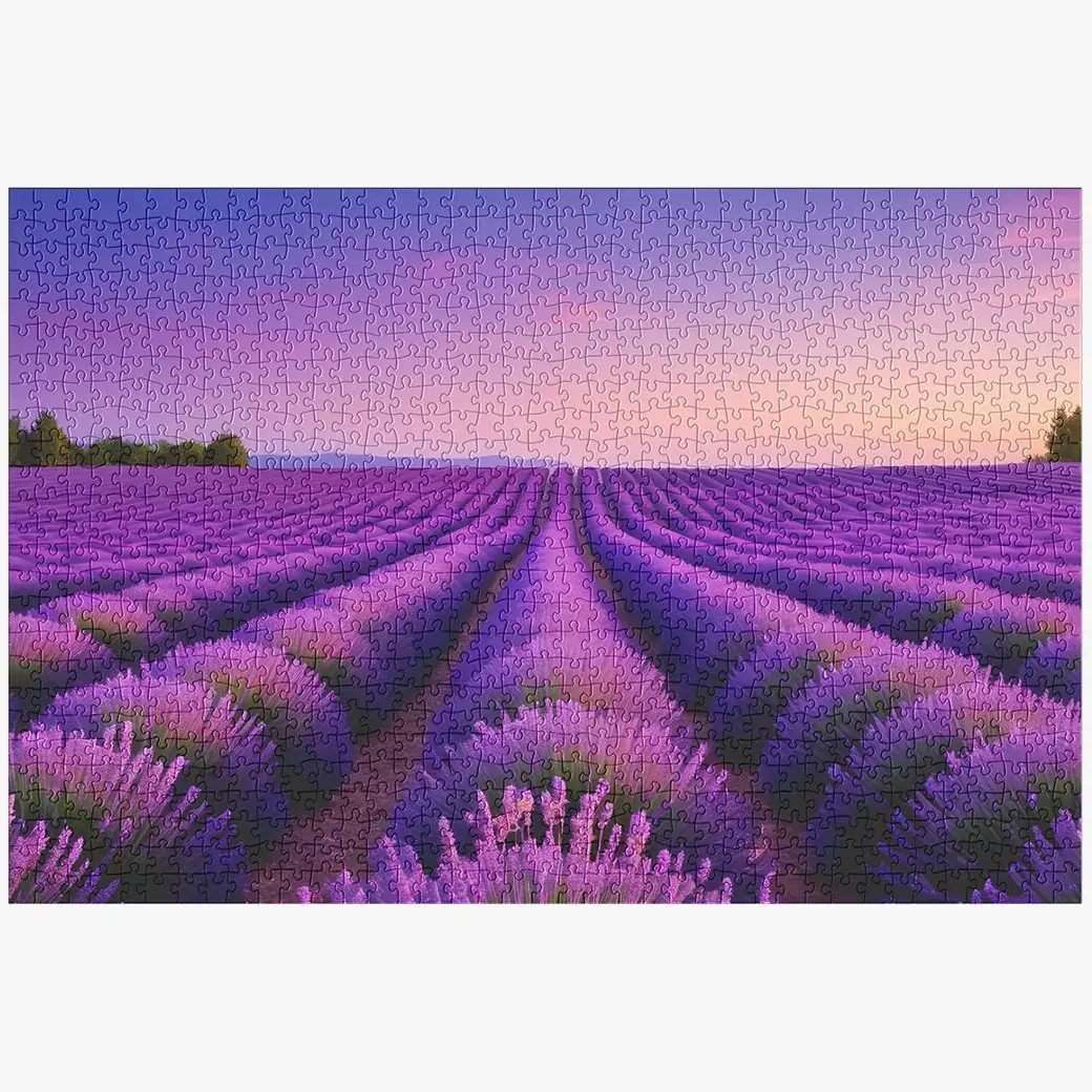 Challenge Your Mind: Recognized as a hard puzzle, this masterpiece is designed to test your skills and patience. With 1000 precision-cut pieces, the complexity of the lavender fields and the dynamic evening sky will engage your mind and senses. It’s the perfect blend of relaxation and mental stimulation, suitable for seasoned puzzlers seeking a new challenge.