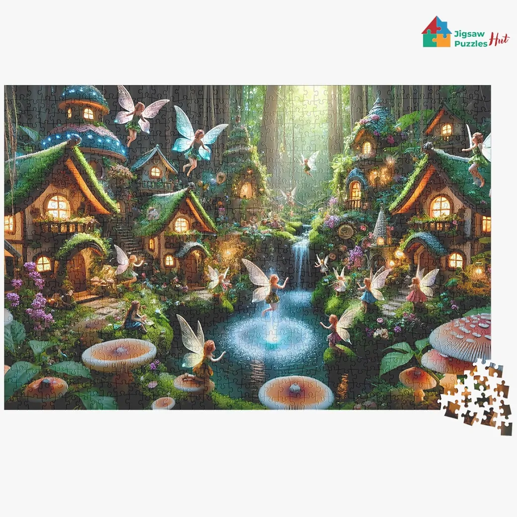 Step into a whimsical world of enchantment with our Magical Fairy Village jigsaw puzzle, a captivating 1000 piece puzzle designed for adults who love the charm and mystery of fantasy worlds. This magical puzzle invites you to explore a hidden village inhabited by fairies, where every corner is filled with sparkling lights, tiny houses, and the magic of nature. Each piece of this unique puzzle reveals intricate details of the fairiesβ mystical world, offering a delightful and rewarding challenge.