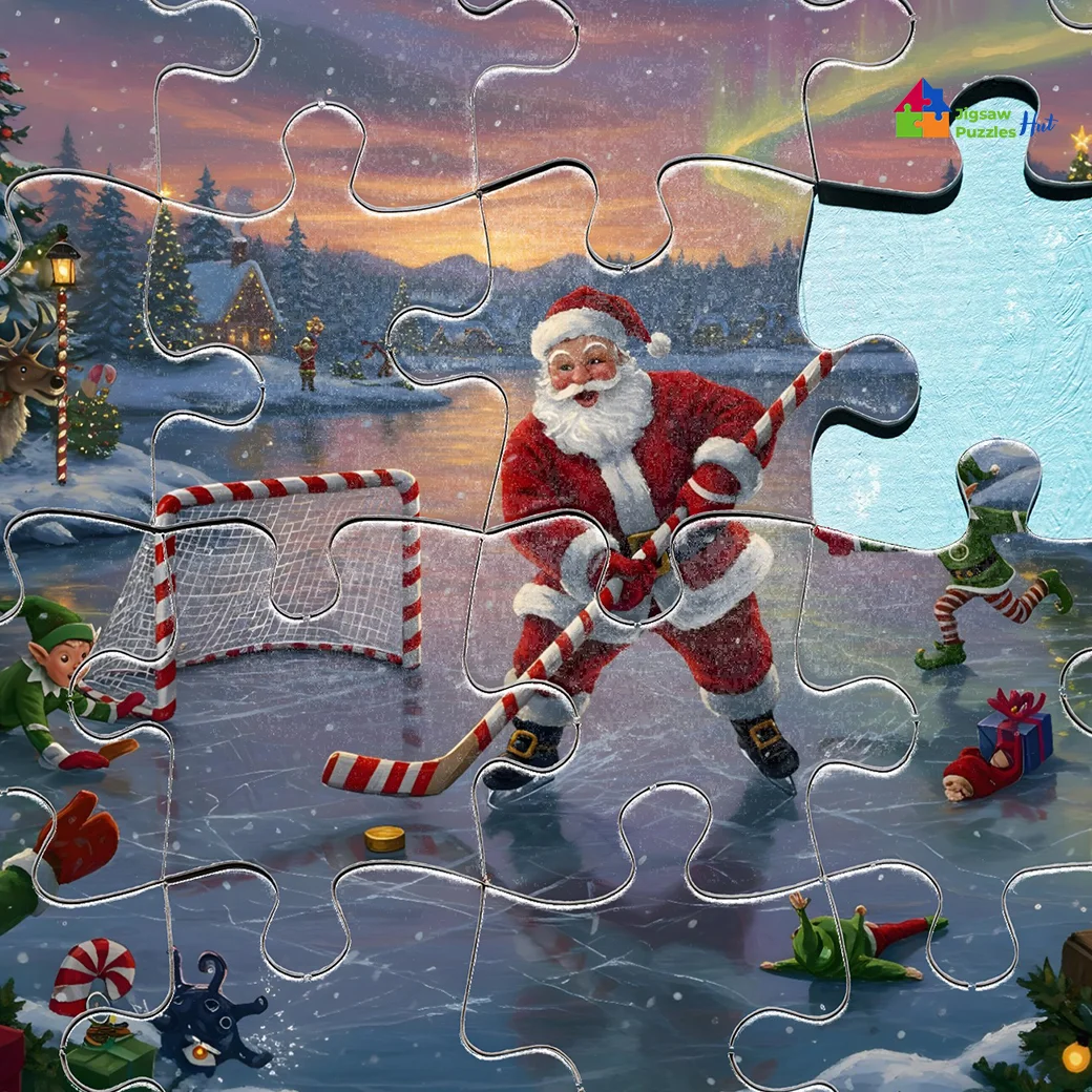 Get into the holiday spirit with a unique Christmas jigsaw puzzle that’s full of movement, laughter, and charm. Santa Playing Ice Hockey is sure to bring festive energy to your winter puzzle nights.