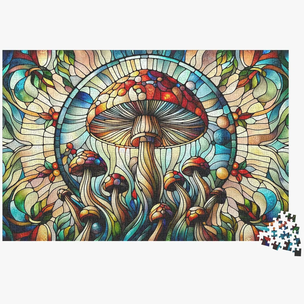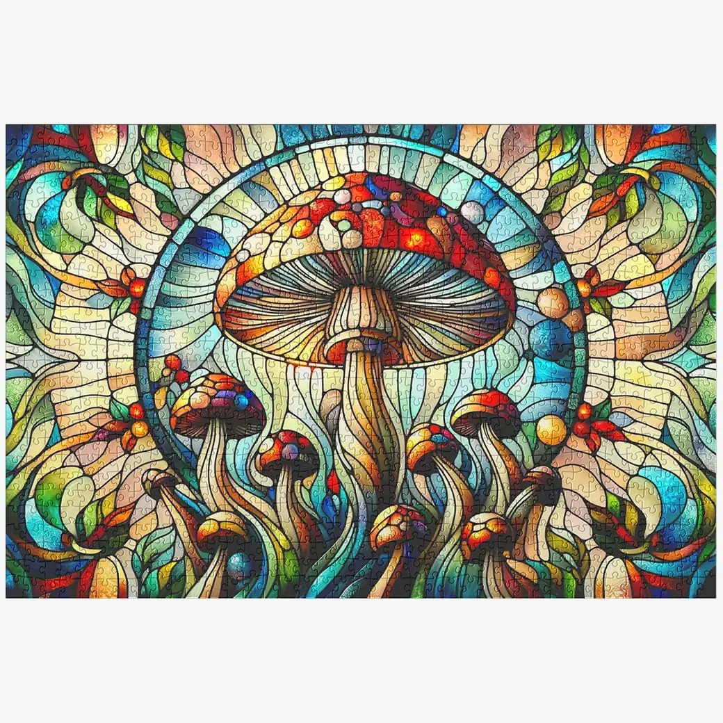 Experience the beauty and challenge of our Stained Glass Effect Mushroom Jigsaw Puzzle. Order now and embark on a journey of creativity and discovery with this hard jigsaw puzzle masterpiece.