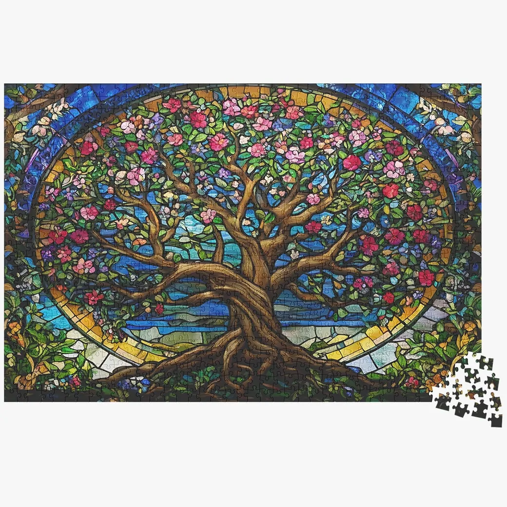 Immerse yourself in the enchanting beauty of our Stained Glass Tree of Life Jigsaw Puzzle, a captivating 1000-piece masterpiece that brings art and entertainment together. Crafted with precision and attention to detail, this puzzle showcases a vibrant and intricate representation of the Tree of Life in stunning stained glass.
