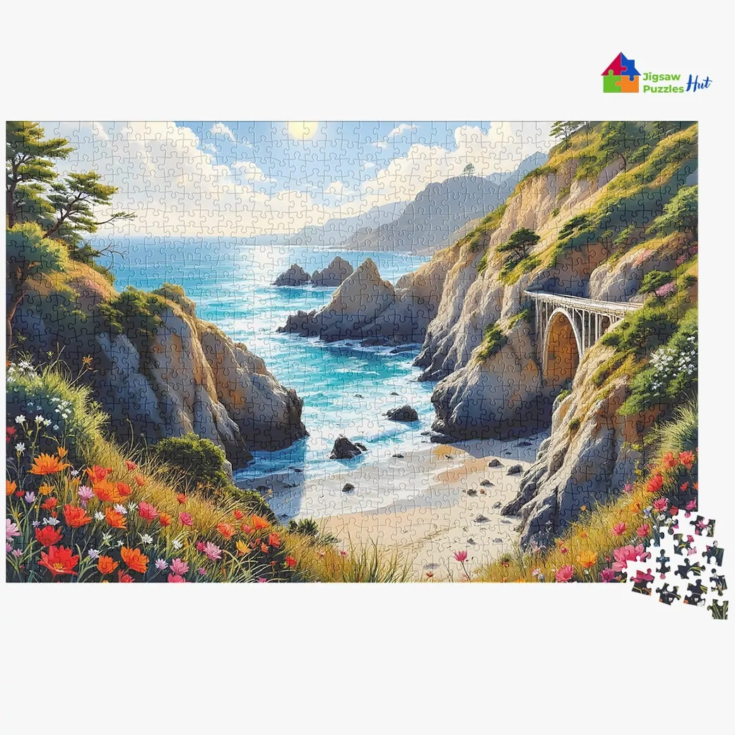 Discover the beauty of the California coastline with the Summer At California Coastal Riff Jigsaw Puzzle. This captivating 1000-piece puzzle showcases the vibrant summer hues, rugged cliffs, and tranquil waves of the iconic California coast, offering a stunning scene that transports you to a sun-soaked paradise. Perfect for puzzle enthusiasts and beach lovers alike, this USA jigsaw puzzle is a fun and relaxing way to enjoy the serene beauty of summer.