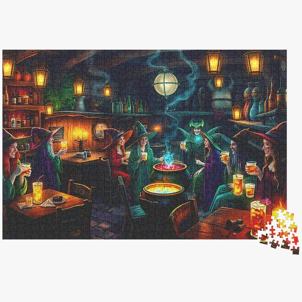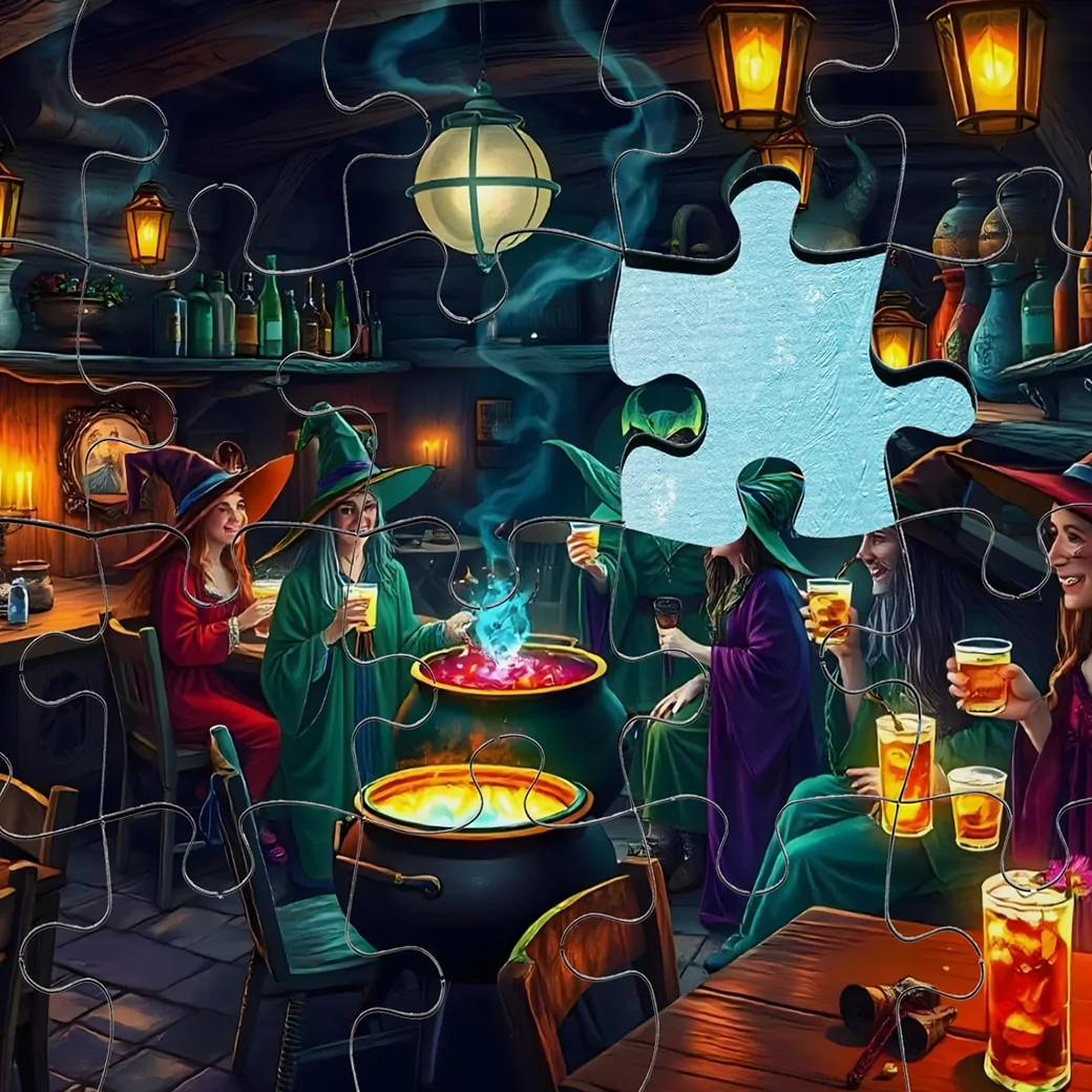 Experience a spellbinding journey with the Witch’s Tavern Jigsaw Puzzle – 1000 Piece Puzzle For Adults, a thrilling Halloween puzzle that invites you into a lively witches’ tavern. Inside this mystical tavern, witches gather to enjoy their magical drinks while gossiping about new and mischievous spells and tricks. The scene is filled with vibrant details, offering a fun and enchanting challenge perfect for Halloween.